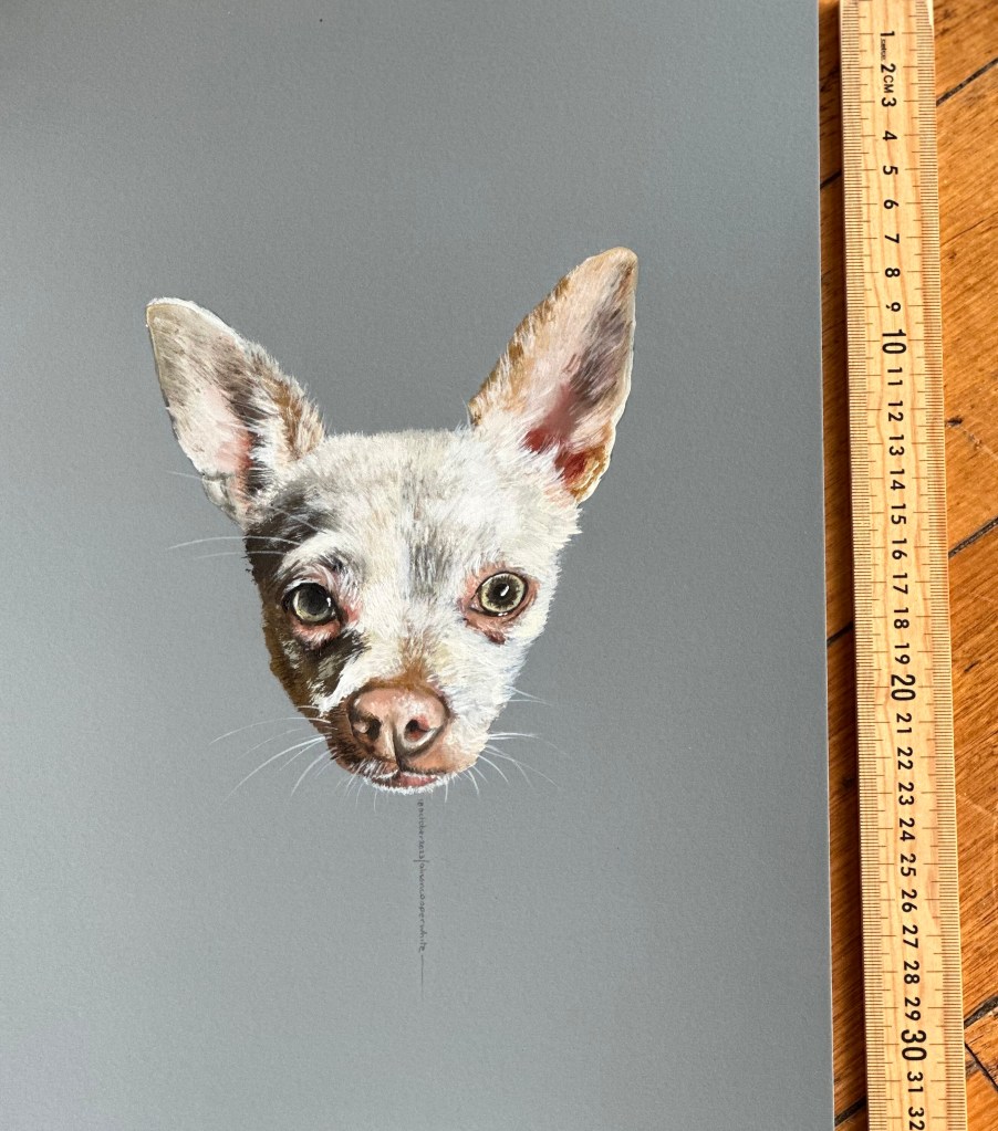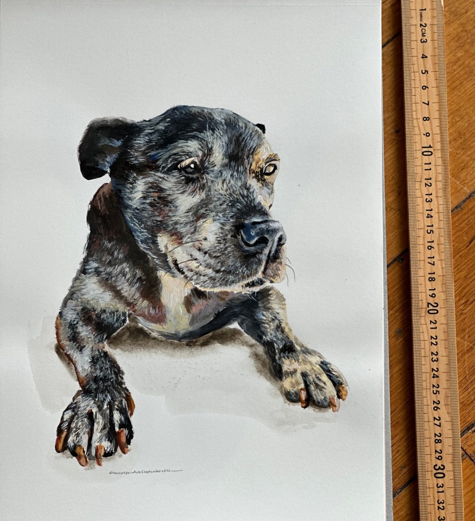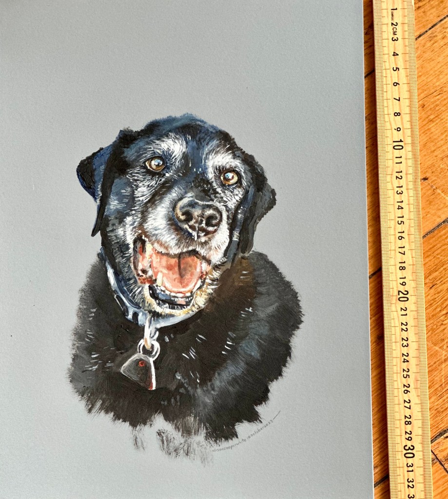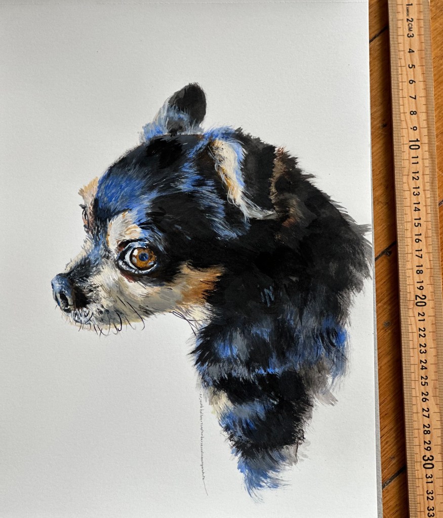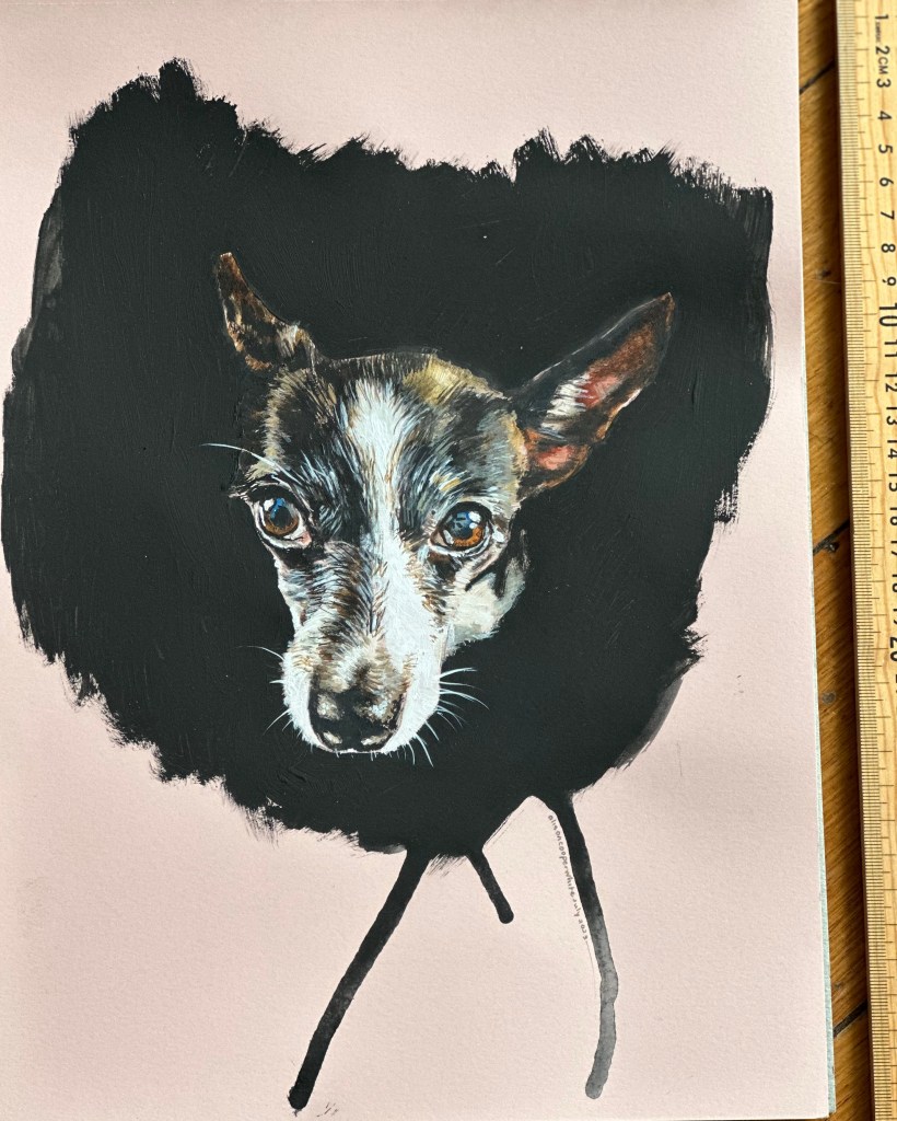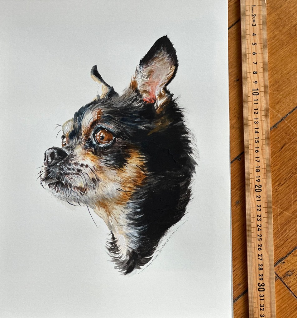 Pet portraits and portraits of family and friends are available on commission, prices vary depending on size and number of images. Works can be painted on 300gsm paper, recycled wood or stretched canvas