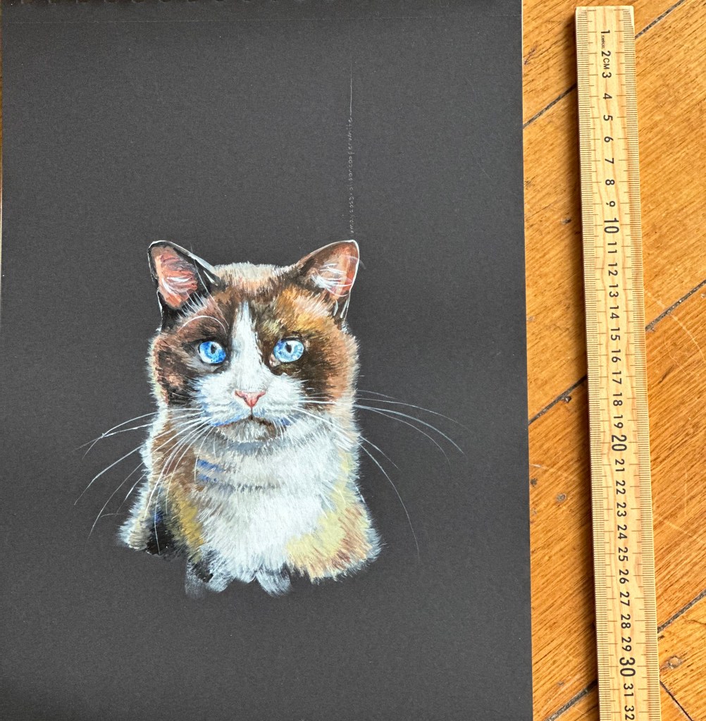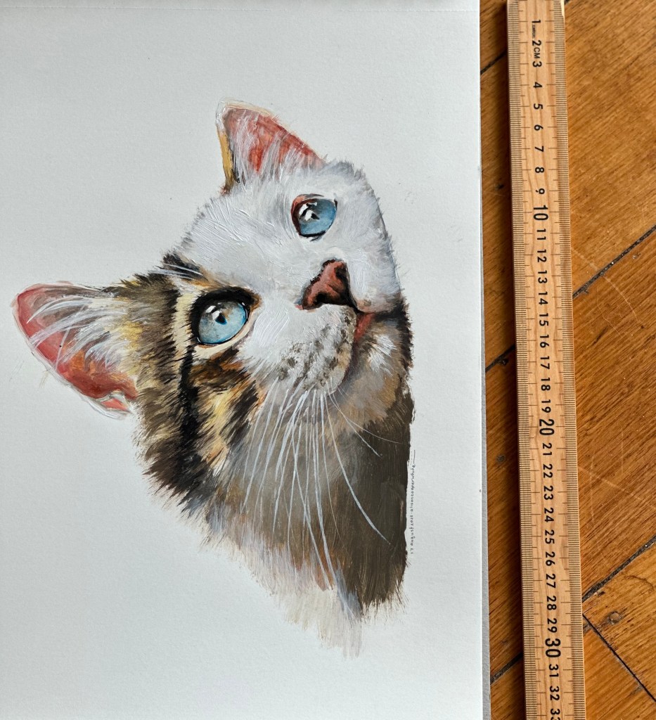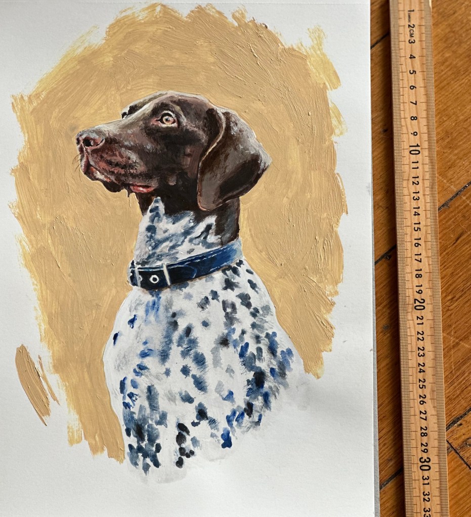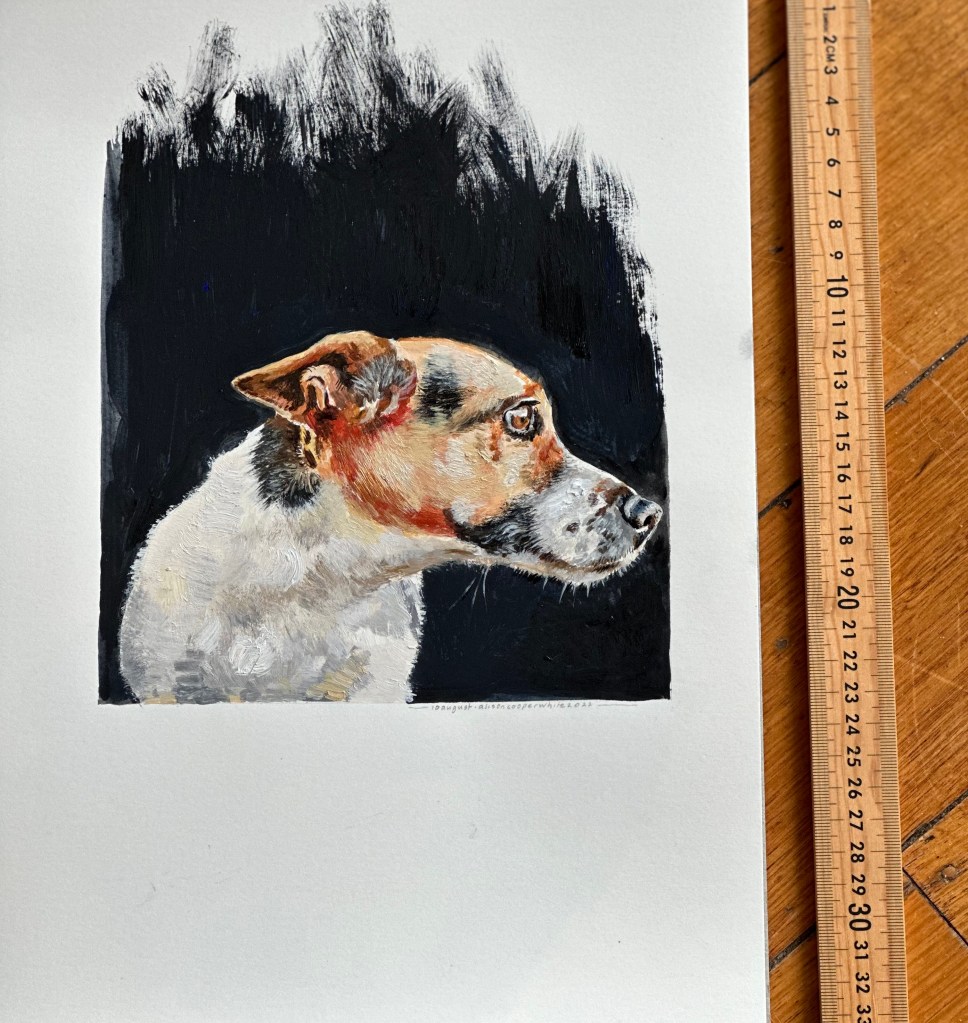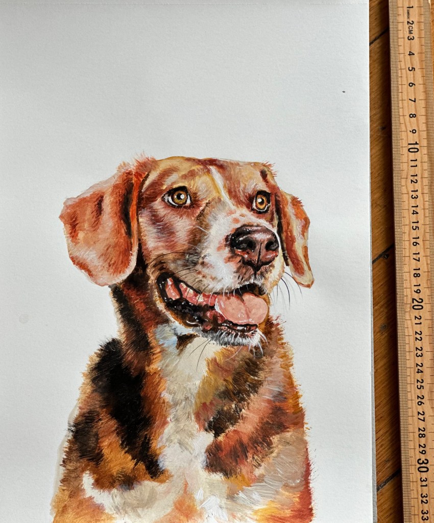 Pet portraits and portraits of family and friends are available on commission, prices vary depending on size and number of images. Works can be painted on 300gsm paper, recycled wood or stretched canvas